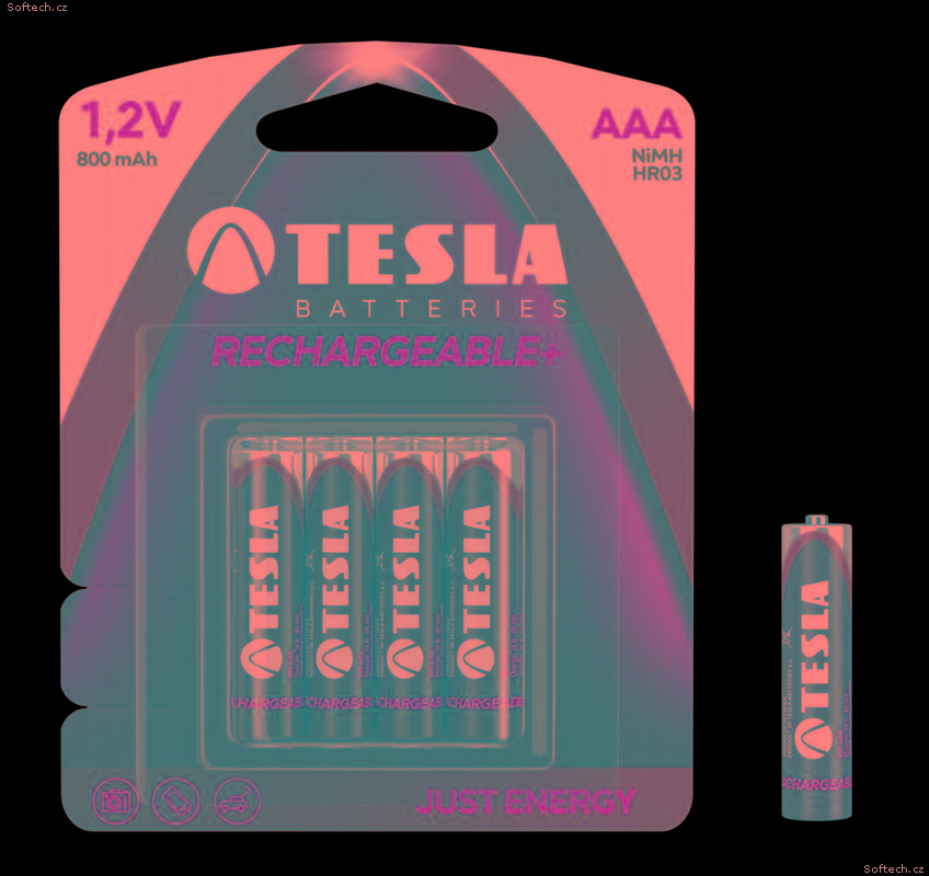 Alkalické dobíjecí baterie TESLA GREEN, typ AAA (HR03) 800mAh - 4ks, blister