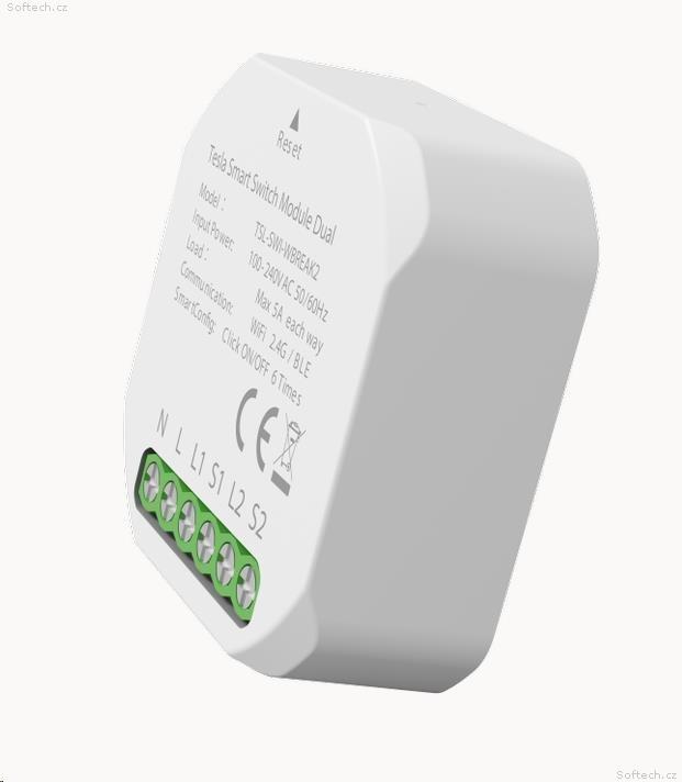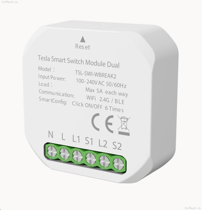 S chytrým relé Tesla Smart Switch Module Dual můžete zvlášť ovládat dva obvody. To využijete například v ložnici, kde jeden napojíte na hlavní světlo v místnosti a druhý na osvětlení u postele.