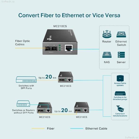 Média konvertor určený k převodu médií z optického vedení 1000Base-LX/LH na metalické vedení 1000Base-T a naopak. Média konvertor MC210CS, který byl navržen podle standardů IEEE802.3ab 1000Base-T a IEEE802.3z 1000Base-LX/LH, je určen pro použití se singlemode optickým kabelem s konektorem typu SC. Média konvertor MC210CS podporuje specifikaci dlouhovlnného laseru (LX) při maximální rychlosti přeposílání paketů. Využívá vlnovou délku 1310 nm u příjmu i odesílání dat.