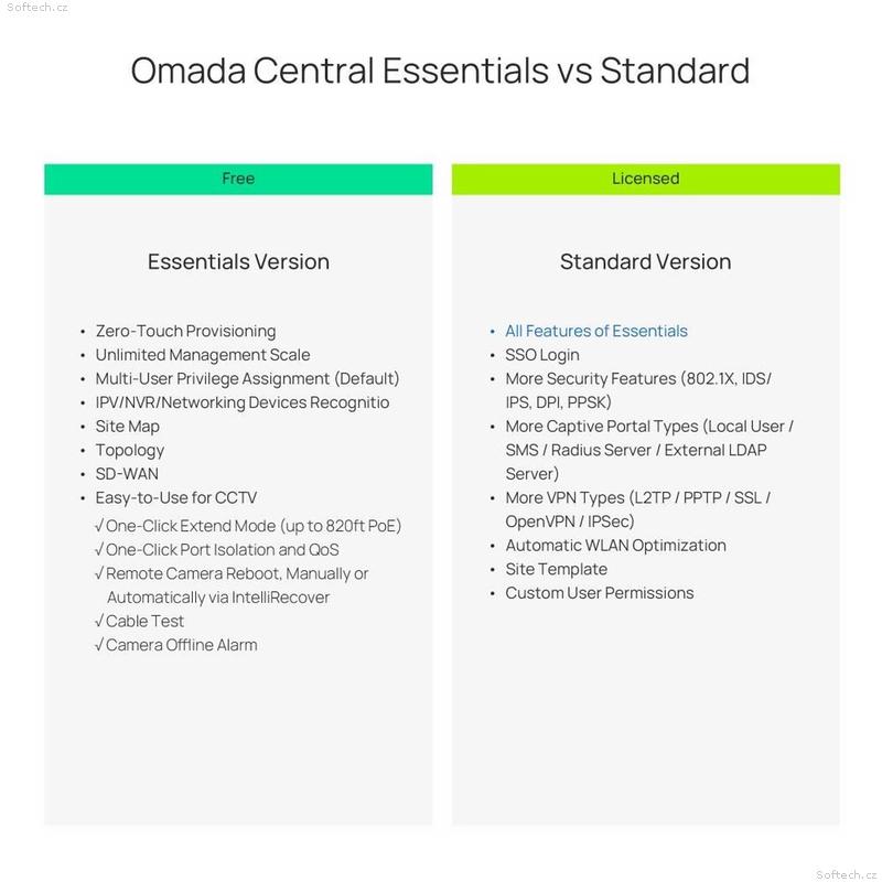 Omada cloud based controller licence na 5 let pro 1 zařízení je softwarová licence pro využívání Omada controlleru, běžícího na cloudu výrobce. Omada controller umožňuje správu a monitoring celé vaší sítě z jednoho místa a to jak Routery, Switche, tak i WiFi Access poionty typu EAP. Controller umožňuje hromadné změny, hromadné SW upgrady, je intuitivní a graficky velmi pěkně zpracovaný, nabízí nespočet reportů, logování a mnoho dalších užitečných funkcí.