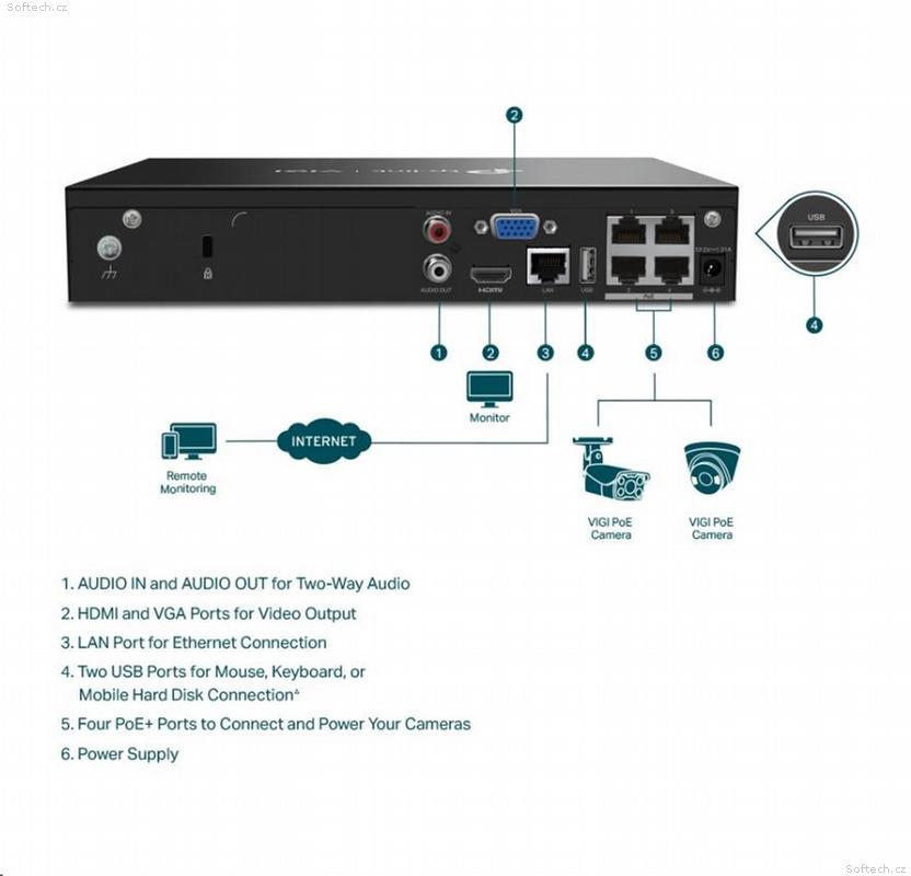 Zařízení TP-Link VIGI NVR1004H-4P-2TB s 4K HDMI video výstupem zaznamenává videa z bezpečnostních kamer a usnadňuje jejich správu. Poskytne vám vysoké rozlišení obrazu až 8MP. Ohlídáte si dění na svém pozemku či ve svém podniku (prodejna, sklad, restaurace, penzion). 4kanálový displej vám zobrazí záběry ze 4 kamer najednou. Neuteče vám tedy žádný detail.