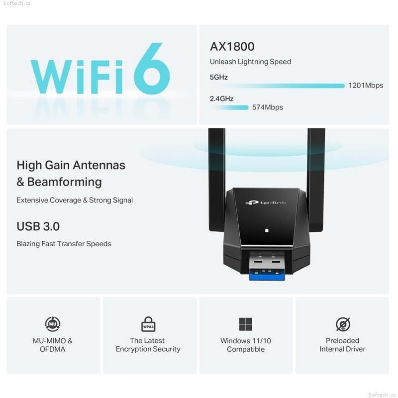 * Wi-Fi 6 a dvě pásma s rychlostí až 1800 Mb/s, zajišťující plynulý zážitek