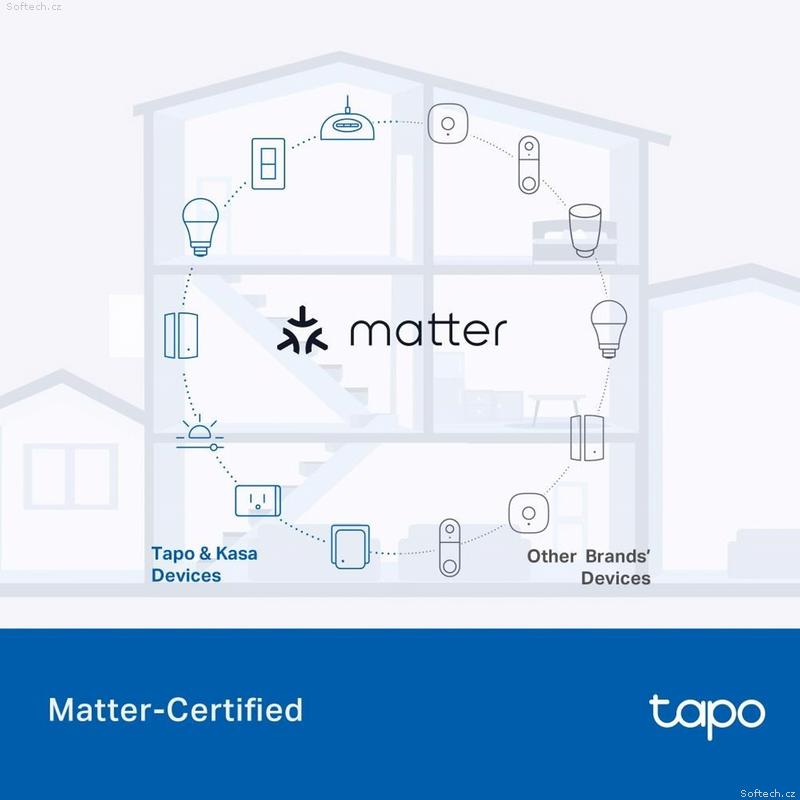 * Integrujte zařízení Tapo s certifikací Matter s dalšími koncovými produkty Matter do svého preferovaného ekosystému.