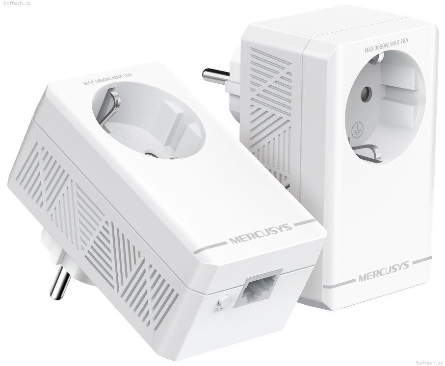 Sada Mercusys MP500P KIT obsahuje dva powerline adaptéry využívající technologii HomePlug AV2, která umožňuje přenos dat rychlostí až 1000 Mb/s na vzdálenost až 300 metrů po elektrických rozvodech. Každý adaptér je vybaven gigabitovým Ethernet portem pro připojení zařízení vyžadujících stabilní a rychlé internetové připojení, jako jsou počítače, herní konzole nebo IPTV.