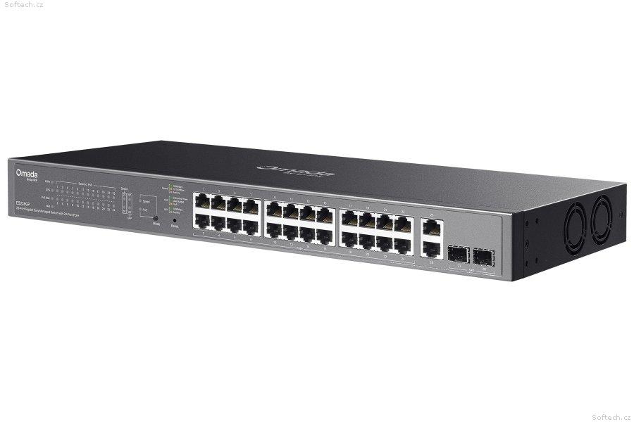 Porty: 26× 10/100/1000 Mbps RJ-45 (24× PoE+), 2× Gbps SFP slot
