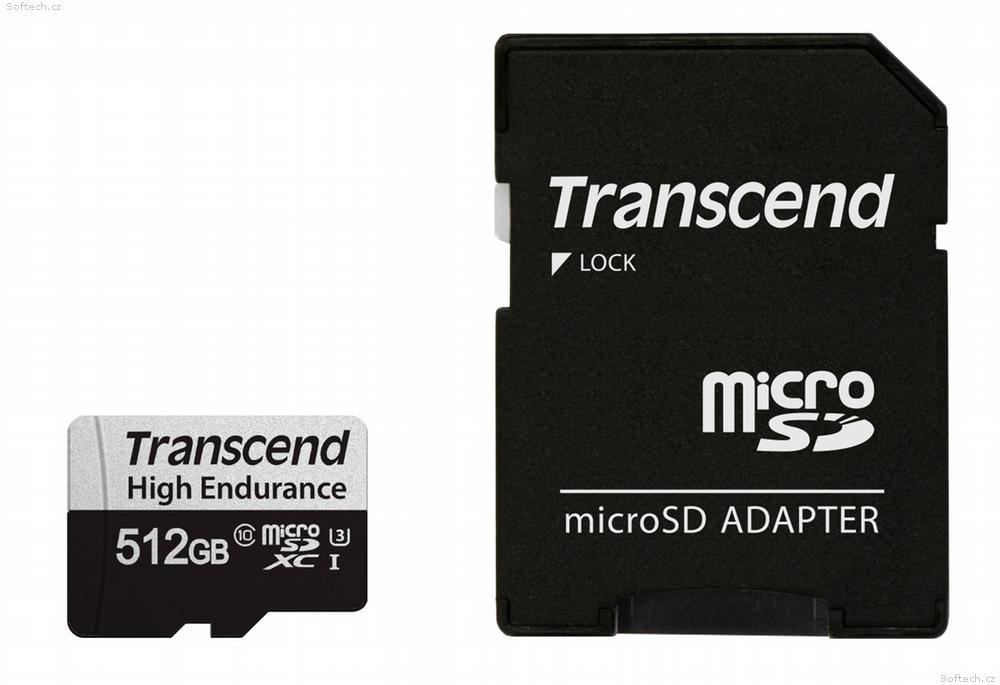 Transcend 512GB microSDXC 350V UHS-I U1 (Class 10) High Endurance paměťová karta, 95MB, s R, 45MB, s W