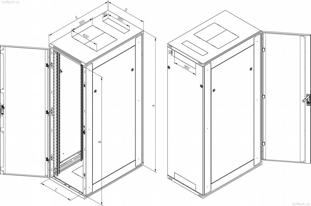 • Stojanový rozvaděč 15U (š)600x(h)1000, skleněné dv