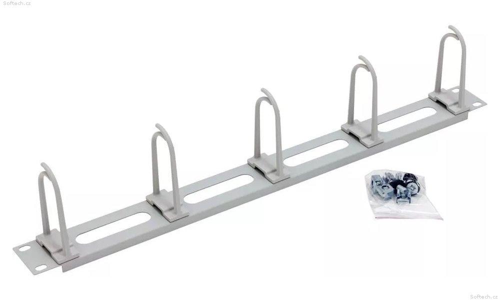 19" vyvaz.panel 1U, 6xháček velký,oválné otv.,šedý