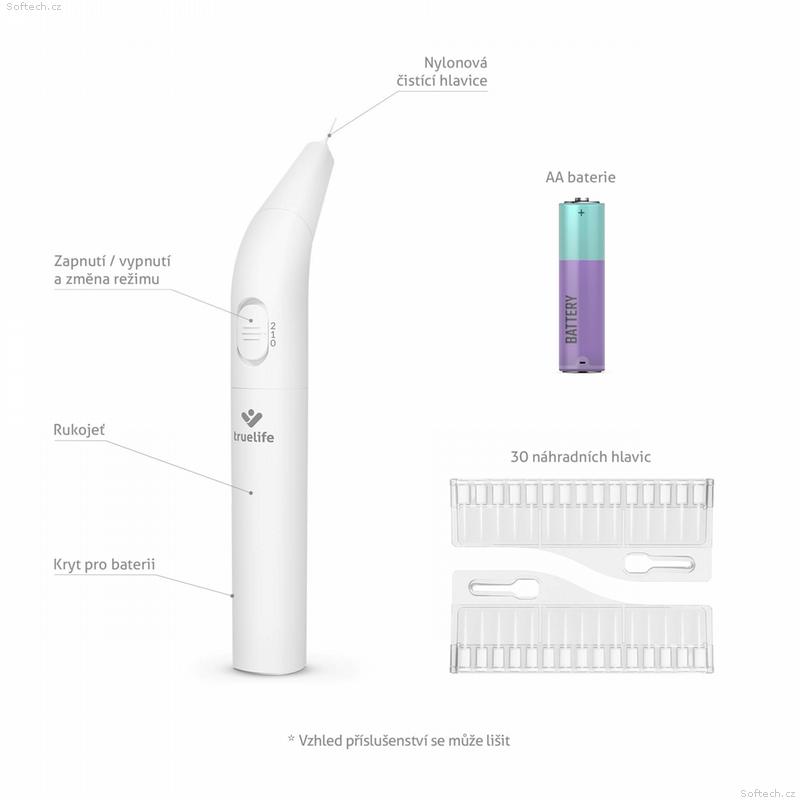 Součástí balení TrueLife InterdentBrush I3 je 30 náhradních hlavic pro dlouhodobé bezstarostné čištění. Hlavici se doporučuje měnit každé 3 dny, abyste předešli ohnutí jejích okrajů, což by vedlo ke snížení účinnosti čištění. K mezizubnímu kartáčku náleží také baterie, která bez problémů vydrží 75 dní při použití kartáčku 2x denně po dobu doporučených 2 minut.