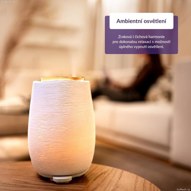 Pro zpříjemnění atmosféry a využití účinků aromaterapie lze do vody v difuzéru přidat několik kapek esenciálního oleje, který rovnoměrně distribuuje technologie OilFlow.