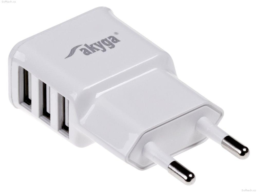 Univerzální elegantní a kompaktní USB nabíječka do elektrické sítě určená pro nejnovější mobily, PDA, GPS navigace, MP3 přehrávače a další zařízení. Lze nabíjet až tři zařízení současně.