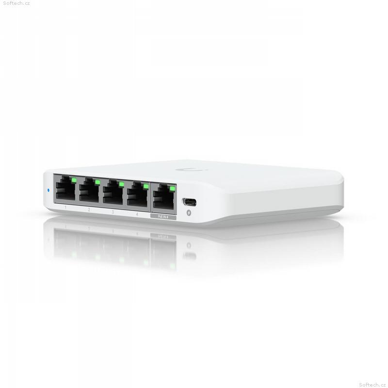 Kompaktní, 5portový 2,5G switch, který lze napájet pomocí PoE nebo USB-C adaptéru.