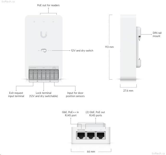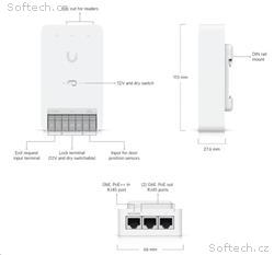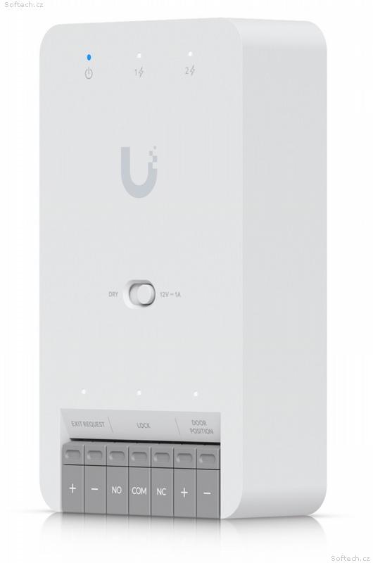 Kompaktní rozbočovač řízení přístupu pro jedny dveře. Umožňuje připojení až dvou přístupových čteček UniFi nebo kamer Protect Camera.