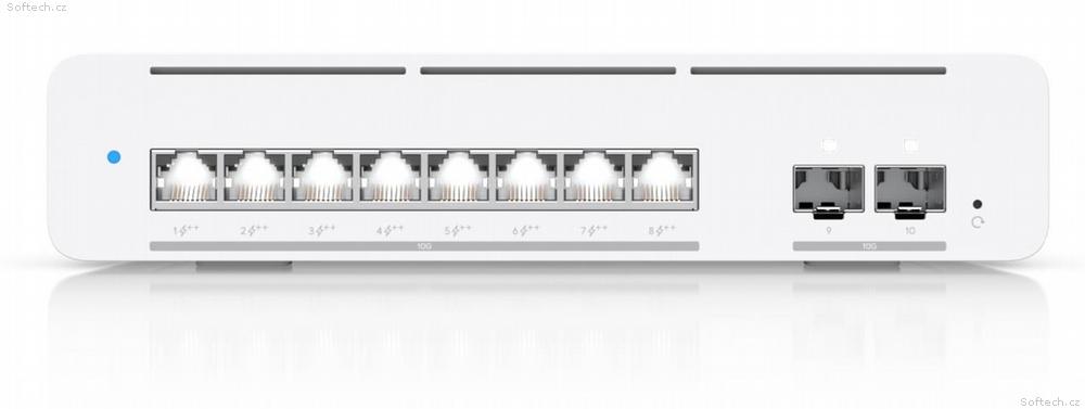 (8) 100M/1G/2.5G/5G/10 Gbps RJ45 porty; (2) 1/10 Gbps SFP+ porty