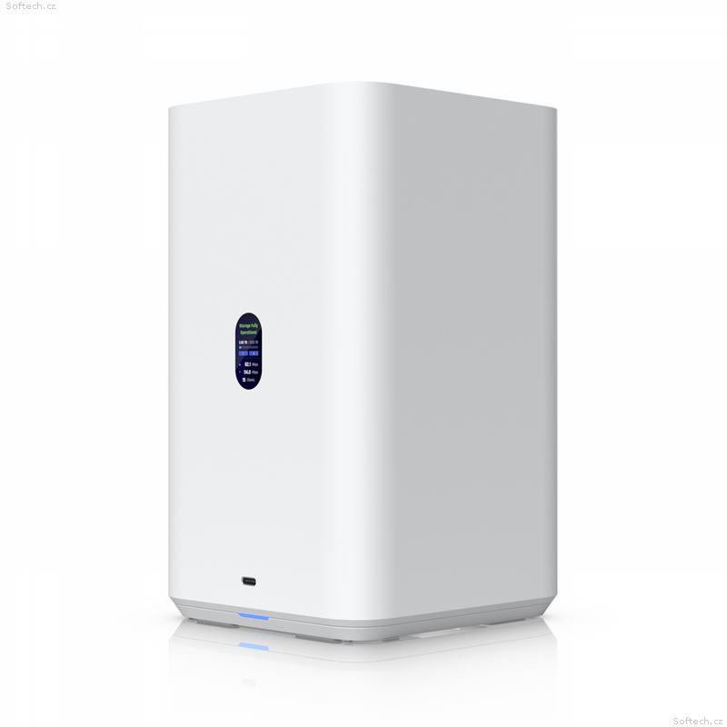 UniFi Network Attached Storage with (2) 3.5" HDD bays, 2.5 GbE networking, USB-C connectivity, and an included PoE++ adapter, all in a compact footprint.