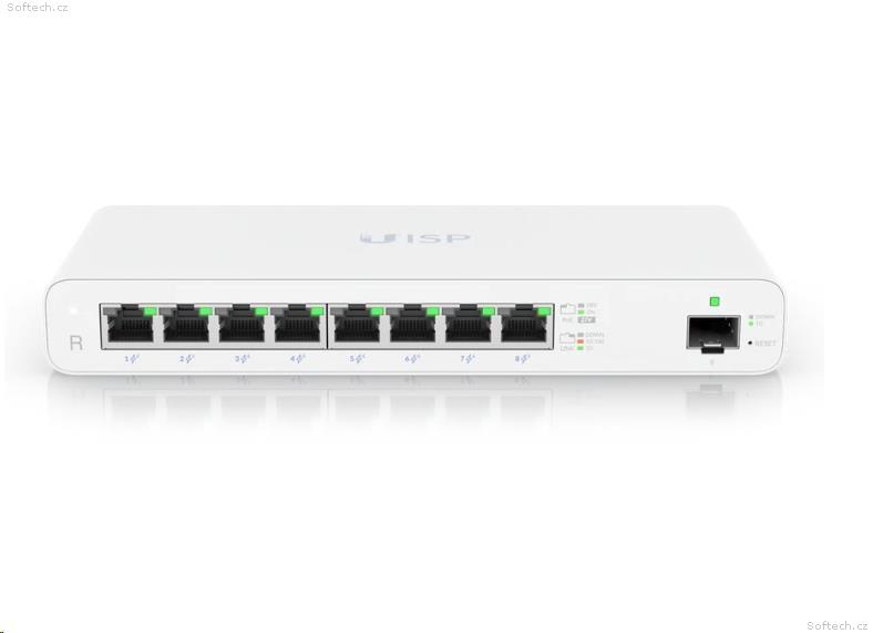 Ubiquiti Router UISP-R, 8x Gbit RJ45, 1x SFP port, 8x PoE výstup, PoE budget 110W, fanless, bílý