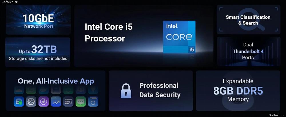 UGREEN NASync DXP480T Plus (10C, i5-1235U, 4,4GHz, 8GBRAM, 4xM.2, 1x10GbE, 2xTB, 1xUSB3.2, WiFi)