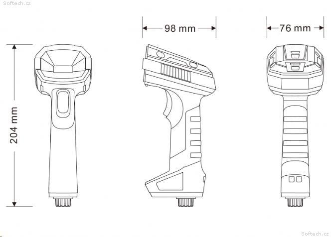 76 (Š) x 204 (V) x 98 (H) mm