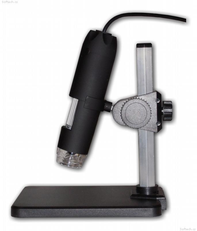 Digitální USB mikroskop (mikroskopická USB kamera) s přísvitem, 2 Mpix, zvětšení až 800x, možnost foto a video. Součástí digitálního mikroskopu je instalační CD a stylový stojánek.