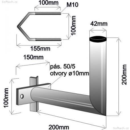 Držák antény na stožár s vinklem, galvanický zinek, délka 20cm