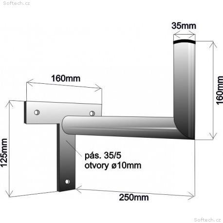 Konzola vhodná k připevnění na fasádu, pro uchycení satelitních parabol a WIFI antén.