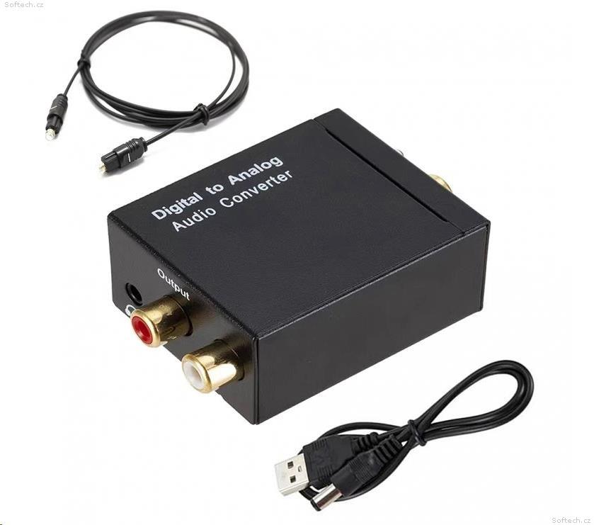 Praktický konvertor, který umožní připojit zařízení s digitálním audio výstupem (optický Toslink nebo koaxiální) k analogovým zesilovačům nebo reproduktorům s RCA vstupy. Ideální řešení pro propojení moderní techniky se starším audio vybavením.