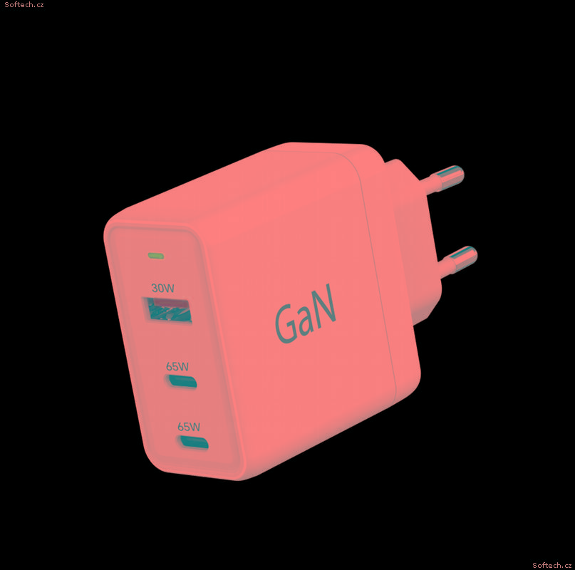 Nabíječka je vybavena GaN technologií, která zajišťuje vyšší účinnost, nižší zahřívání a kompaktnější rozměry oproti běžným nabíječkám.