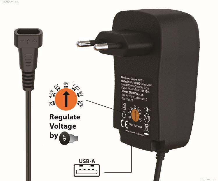 Výstupní napětí: 3/4.5/5/6/7.5/9/12V DC.