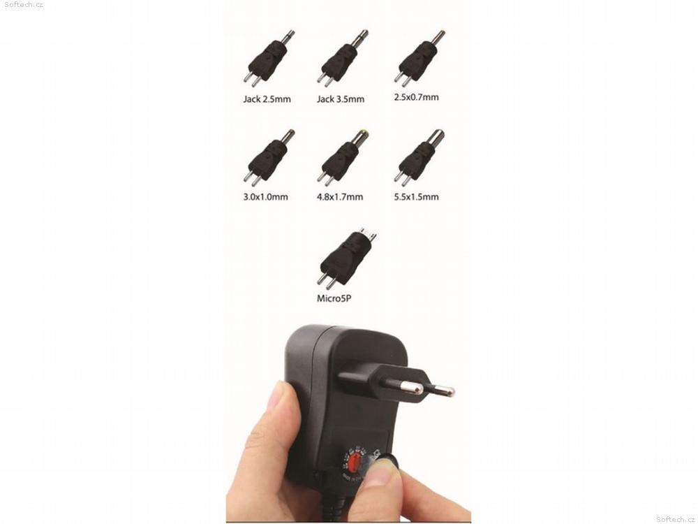 Vyměnitelné koncovky: 2.35 x 0.7mm, 3.5 x 1.35mm, 4 x 1.7mm, 5 x 2.1mm, 5.5 x 2.5mm, 5.5 x 2.1mm, Jack 2.5mm, Jack 3.5mm, Micro 5P, 2.5 x 0.7mm, 3 x 1mm, 4.8 x 1.7mm, 5.5 x 1.5mm.
