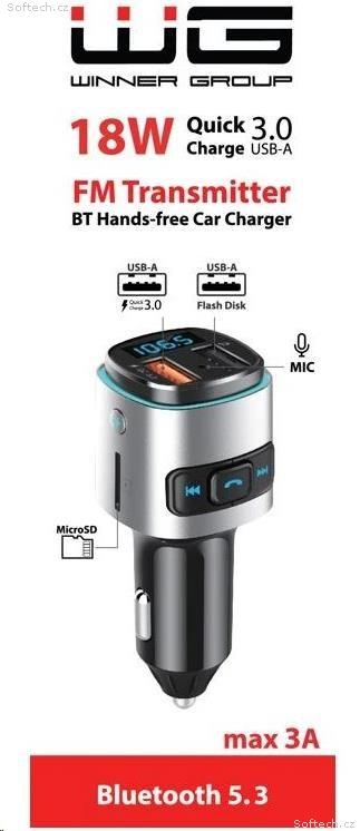 WG - Nabíječka do auta, Transmitter FM, QC 3.0, st