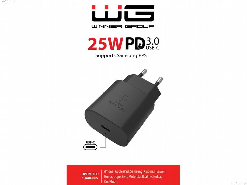 • WG - Síťová nabíječka 1x USB-C, PD PPS 25W, černá