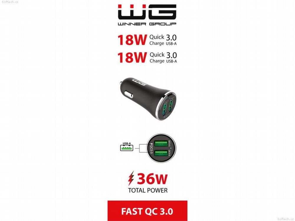 • WG - Nabíječka do auta 2x USB-A 36W, QC 3.0 + QC 3