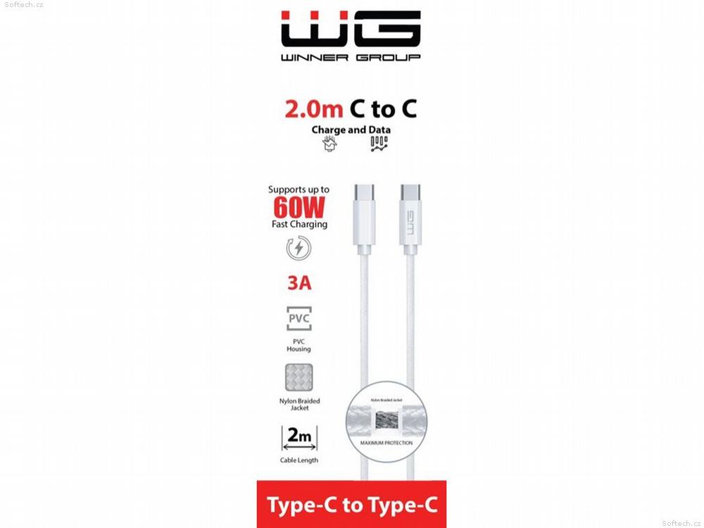 • WG - Datový kabel Type-C na Type-C, 2 metry, 3A, 6