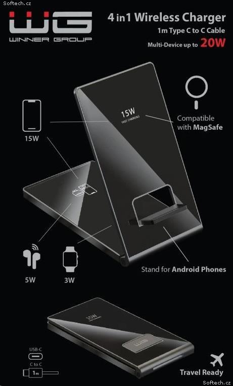 • WG - Bezdrátová nabíječka WG36, 4v1 FAST MAGNET, 2