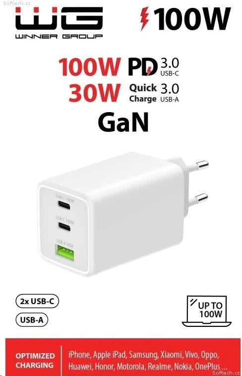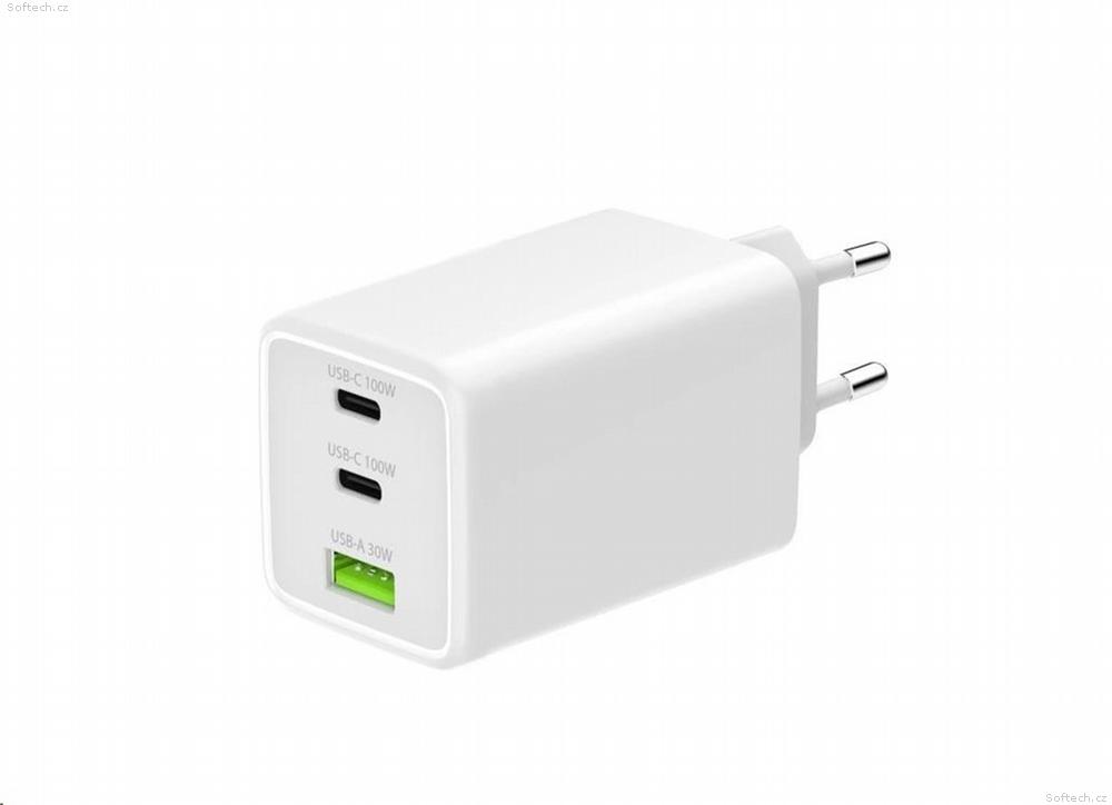 Síťová nabíječka GaN 3x USB 100W - bílá
