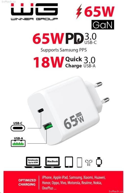 Celkový výkon nabíječky: 65W
