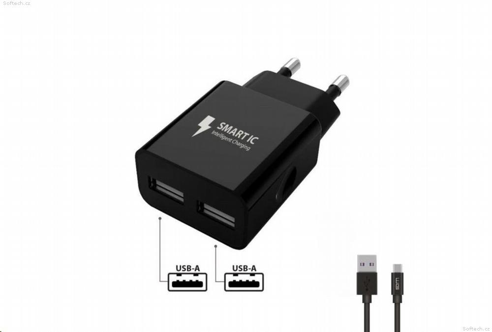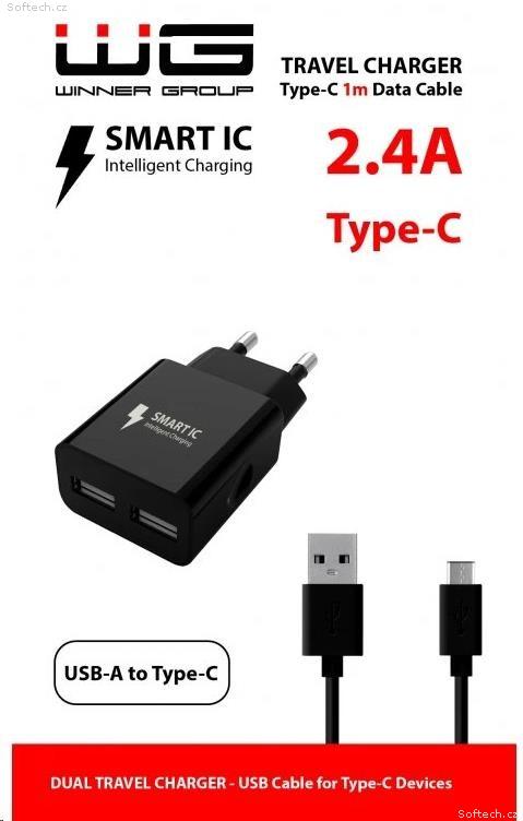 WG - Síťová nabíječka 2x USB-A 2,4A, Smart IC + kabel USB-A na Type-C, black