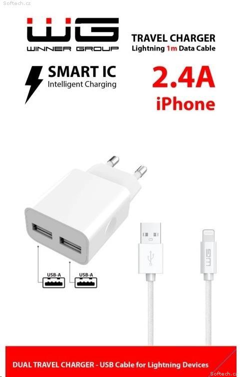 WG - Síťová nabíječka 2x USB-A 2,4A, Smart IC + kabel USB-A na Lightning, white
