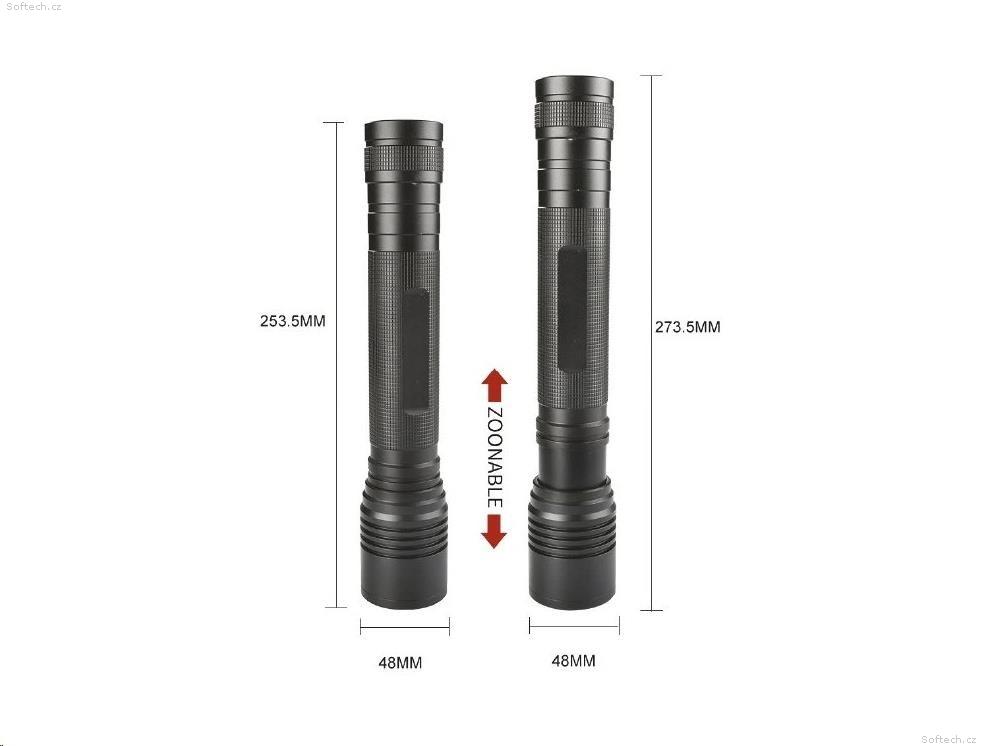 Svítilna je opatřená textilním poutkem pro pohodlnější nošení a zavěšení například na zápěstí. Vroubkovaný povrh svítilny zajistí dokonalé držení a zamezí vyklouznutí z ruky.