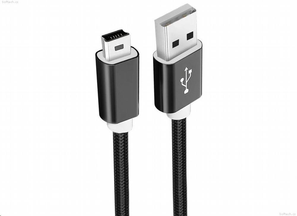 WG - Datový kabel USB Mini-B (5 pins)-USB-A, 1m, nylon braided, black