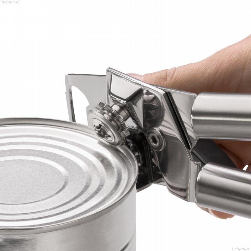 Otvírák na konzervy disponuje rovněž otvírákem na láhve s korunkovými uzávěry a špička slouží pro odstranění vakuových uzávěrů.