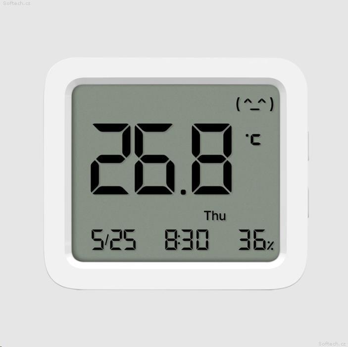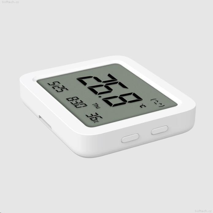 Hlavní displej chytrého monitoru teploty a vlhkosti Xiaomi 3 zobrazuje ve výchozím nastavení teplotu. Lehkým stisknutím tlačítka v pravém horním rohu lze přepínat mezi třemi režimy: teplotou, vlhkostí a časem, přičemž zobrazení si můžete nastavit podle vlastních potřeb.