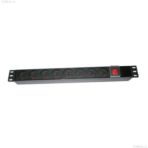 19" rozvodný panel 8x 230 V, zásuvky dle ČSN, vypínač, indikátor napětí, výška 1U, 1,8 m přívod.