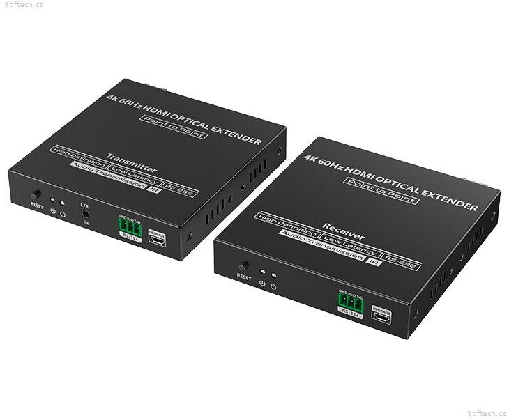 Sada optického extenderu 4K HDMI, která se skládá z vysílače a přijímače a využívá technologii ipcolor STREAM pro přenos s vysokým rozlišením a nízkou latencí. HDMI signál v rozlišení 4K při 60 Hz lze prodloužit až na 40 km pomocí jednovidového optického kabelu LC, který podporuje propojení jeden na jednoho nebo kaskádové zapojení gigabitového přepínače. Podporuje také funkce HDMI loop out, IR passback a RS-232 pass-through.