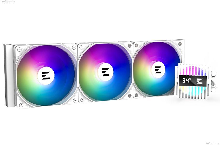 Vodní chladič určený pro chlazení široké škály procesorů. Vyznačuje se vysokou kvalitou, výkonem a spolehlivostí. Disponuje třemi 120 mm velkými ventilátory s ARGB podsvícením. Odolné opletené hadice zaručují díky dostatečně širokému průměru plynulý průtok chladicí kapaliny. Chladič je dodáván se speciální teplovodivou pastou ZM-STC10 pro maximální odvod generovaného tepla.