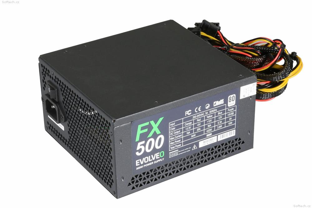 EVOLVEO FX 500, zdroj 500W ATX, 14cm, tichý, 80+, White, záruka 3 roky